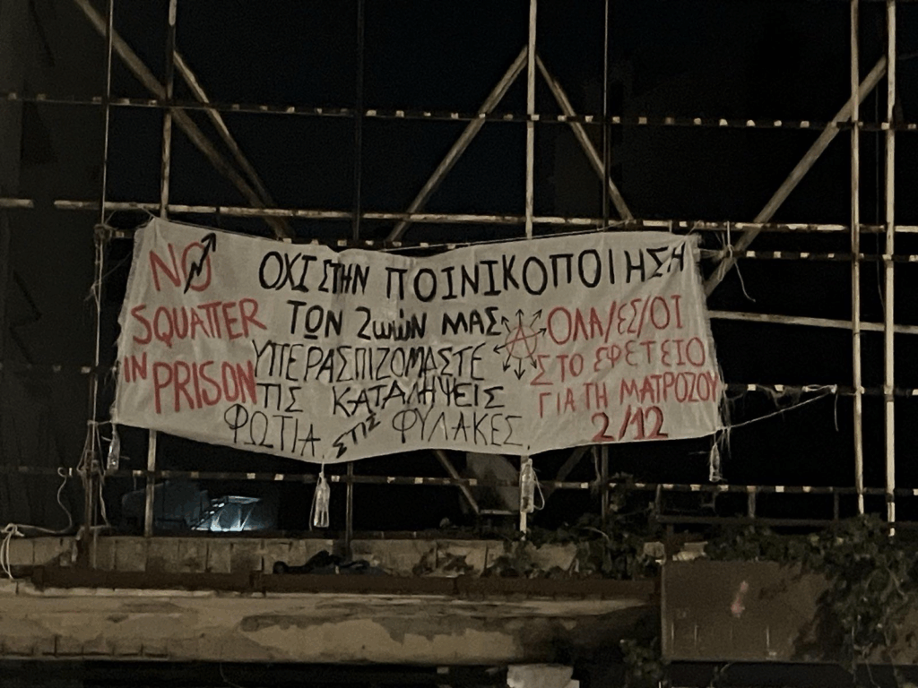 Σε ένδειξη αλληλεγγύης στην Κοινότητα Καταλήψεων Κουκακίου ενόψει του εφετείου των συντροφιών για την εκκένωση της Ματρόζου 45 που θα πραγματοποιηθεί στις 2/12, αναρτήσαμε δύο πανό στην κατάληψη των Ζιζανίων και σε κεντρικό σημείο στην Αλεξάνδρας. Τα συντρόφια αντιμετωπίζουν μια πρωτόδικη απόφαση ποινής φυλάκισης 77 μηνών.