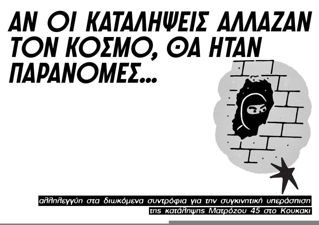 [Αθήνα] Αφίσες & τρικάκια αλληλεγγύης στα συντρόφια που υπερασπίστηκαν την κατάληψη ματρόζου 45.