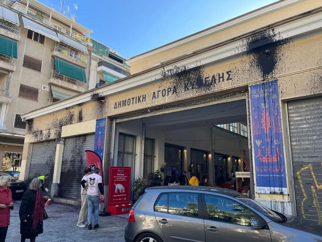Την Παρασκευή 28/11 προχωρήσαμε στην αναγραφή συνθημάτων και την επίθεση με μπογιές στην πρόσοψη της Δημοτικής Αγοράς Κυψέλης, στοχεύοντας κυρίως τις εξωτερικές κάμερες του κτιρίου. Αφιερώνουμε την δράση μας αυτή στα δικαζόμενα συντρόφια, ως ελάχιστη ένδειξη αλληλεγγύης.