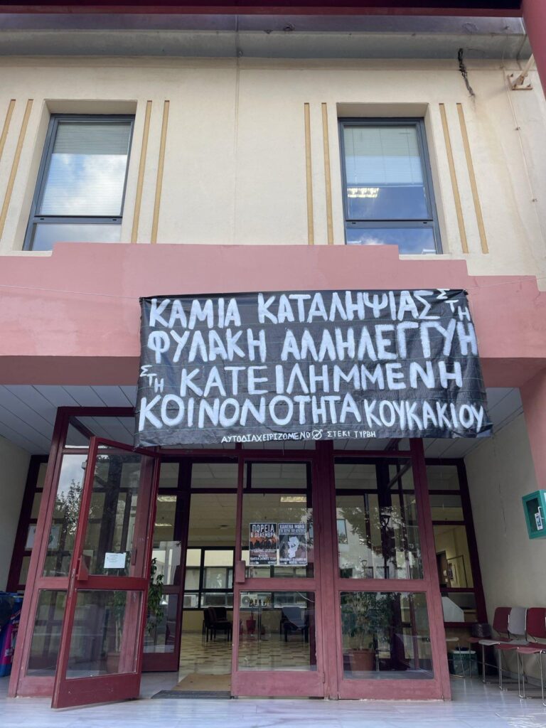 Ως ελάχιστη ένδειξη αλληλεγγύης στα συντρόφια της Κοινότητας Καταλήψεων Κουκακίου, την Δευτέρα 1/12 πραγματοποιήσαμε μικροφωνική μπροστά από το κτήριο διοίκησης του Πανεπιστημίου Αιγαίου και την Τρίτη 2/12 μια ακόμα στο κέντρο της πόλης στην Πλατεία Σαπφούς. Παράλληλα αφισοκολλήθηκαν οι παρακάτω αφίσες σε όλη την πόλη. Ακολουθεί το κείμενο που μοιράστηκε στη μικροφωνική: