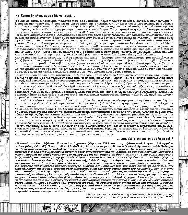 (Απόσπασμα από ανακοίνωση της «Συνέλευσης Αλληλεγγύης στους/στις καταληψίες της Κοινότητας Κουκακίου» τον Νοέμβρη του 2025)